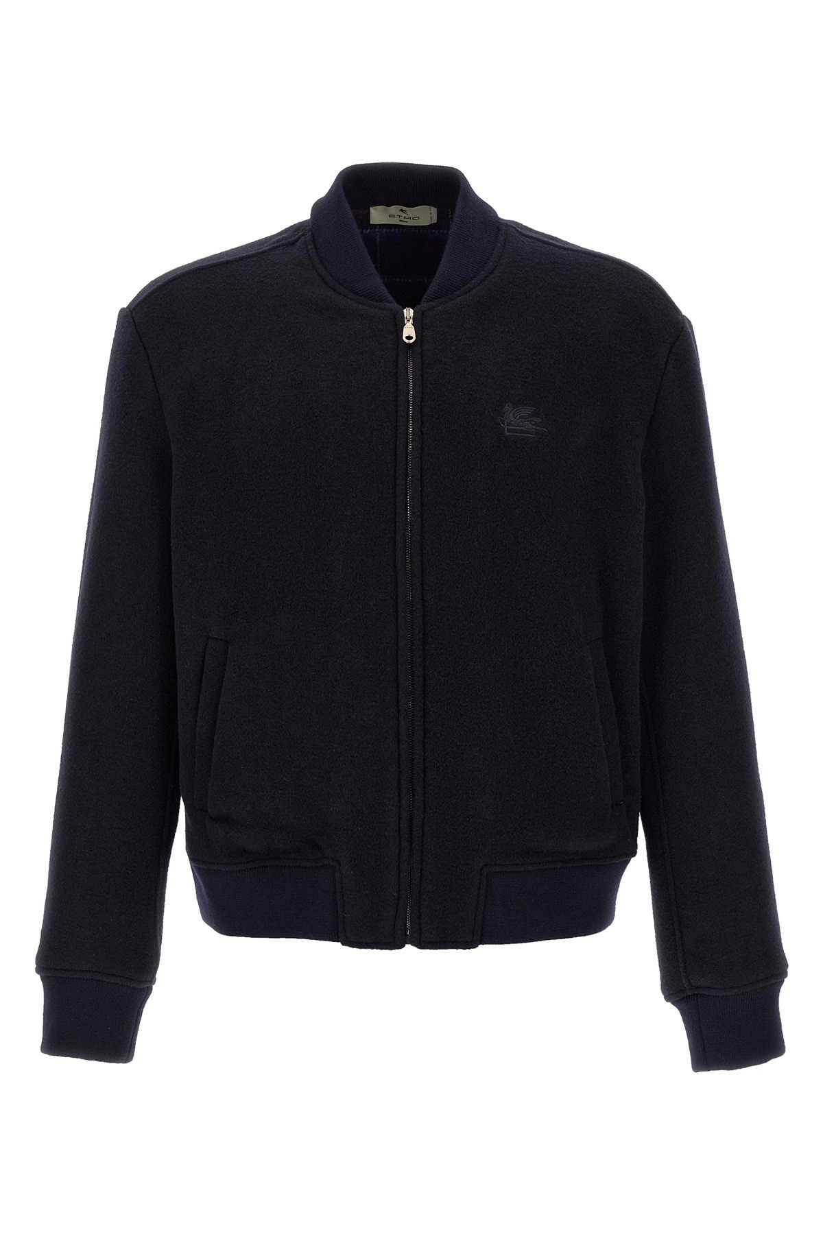 cod. MRBA001699TQB69S9885 Wool bomber jacket with front pegasus embroidery, zip closure, side pockets, ribbed knit collar and cuffs. Color: Multicolor Size & Fit: True to size fit Composition: 57% wool 32% polyester 6% polyamide 5% of Made in: Italy