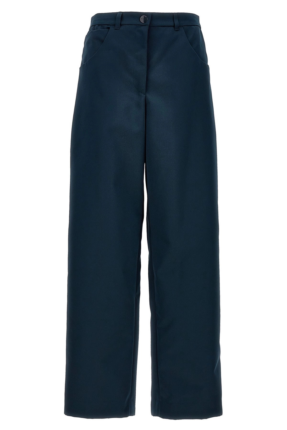 cod. 122531627200 Duchesse fabric cargo pants with tone-on-tone 'Pegaso' embroidery, high waist, button and zip closure, pockets. Color: Blue Material: 100% polyester Made in: Italy Size &Fit: True to size fit