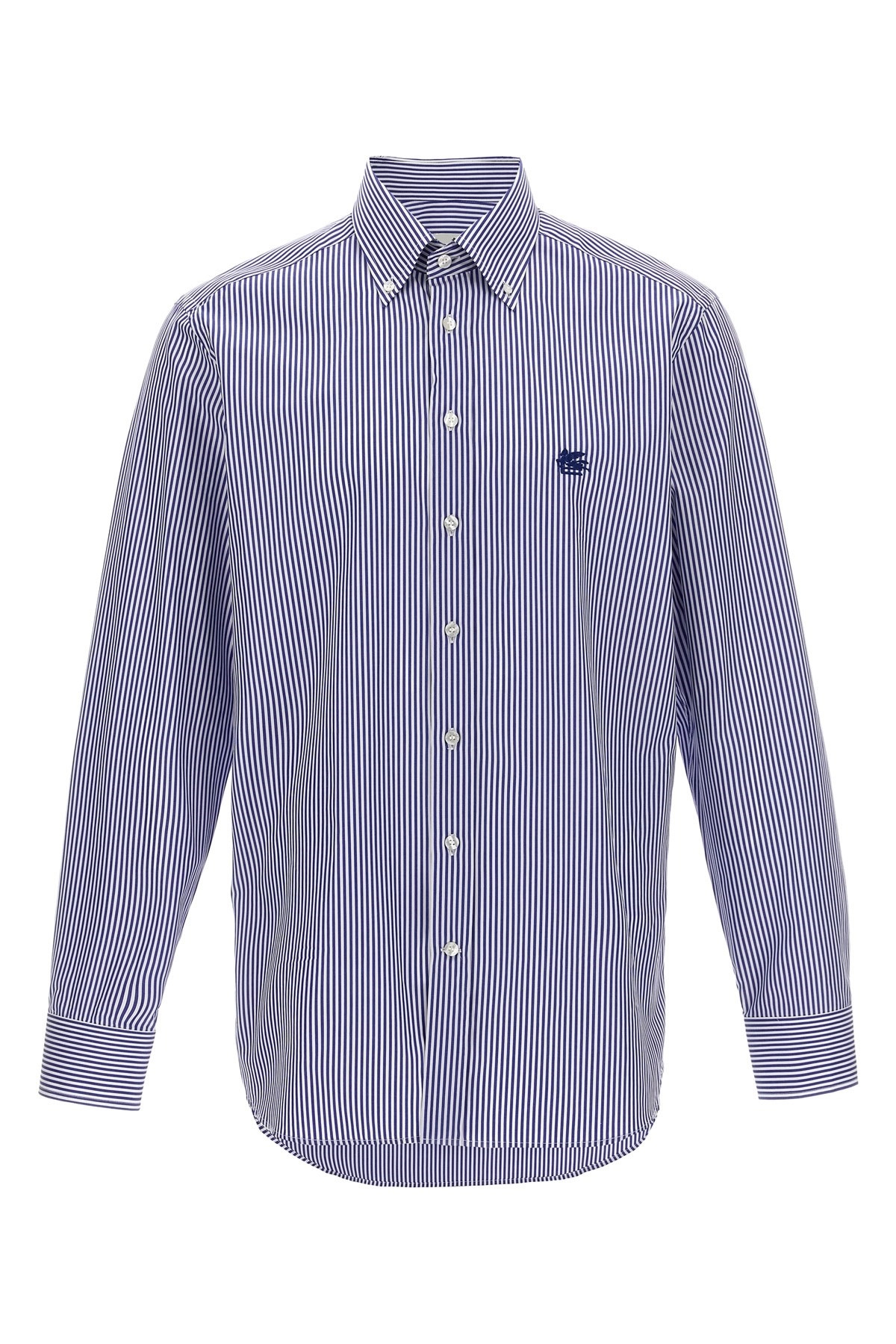 cod. MRIB000499TR575S8461 Striped cotton poplin shirt, tonal 'Pegaso' logo embroidery on the front, button down model, button closure, long cuffed sleeves. Color: Blue Size & Fit: true to size fit Collar size Composition: 100% cotton Made in: Italy