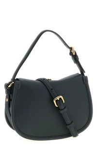 cod. WP1C0021AP340V7347 Small leather 'Pony' shoulder strap, suede lining, magnetic closure with metal button with engraved logo, leather strap and metal buckle, adjustable and removable shoulder strap. Color: Green Size & Fit: W 23 x H 15 x D 7.5 cm Composition: 100% calfskin leather (Bos Taurus) Made in: Italy