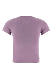cod. N292AMERICALILA 'N°292 America' cotton and cashmere blend crew neck t-shirt with short cuffed sleeves. Color: Purple Size & Fit: extra slim fit - ONE size Composition: 70% cotton 30% cachemire Made in: China