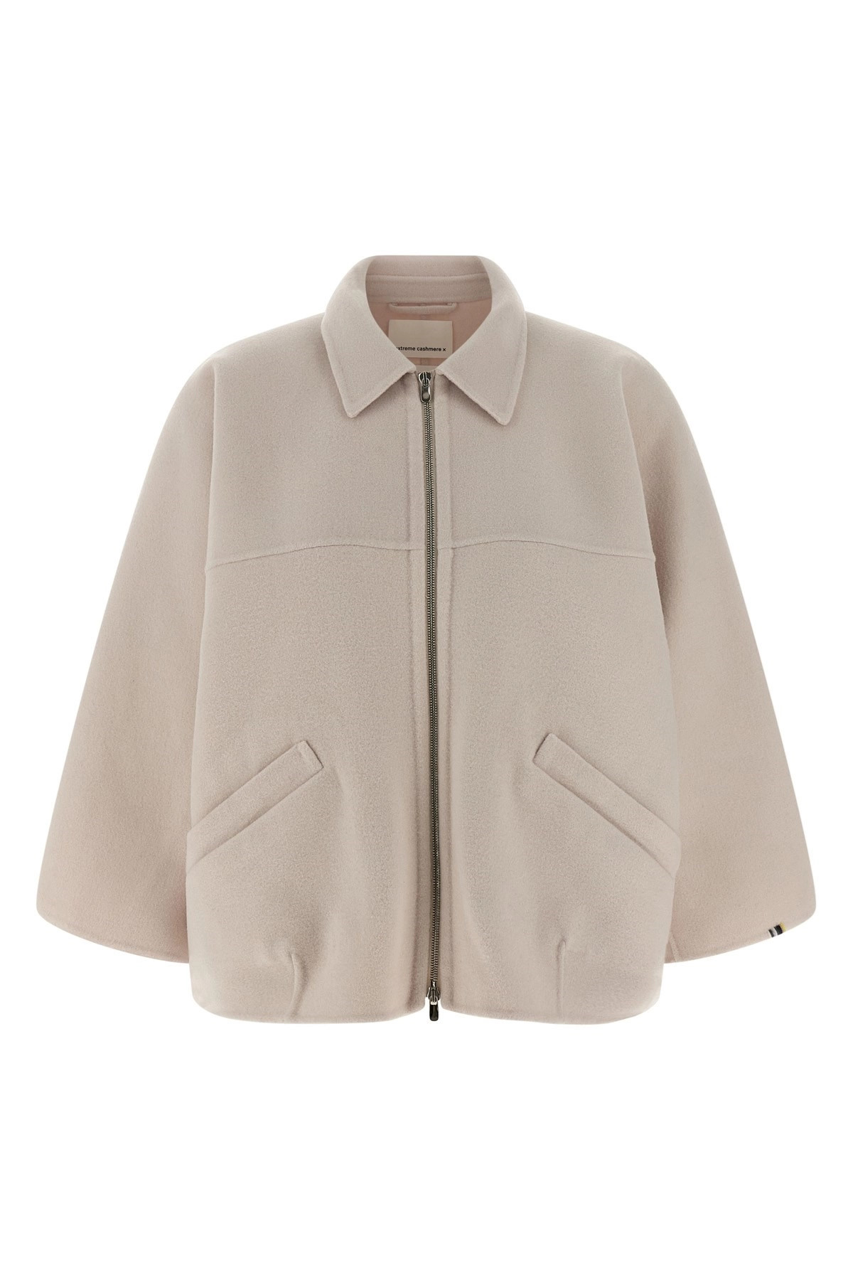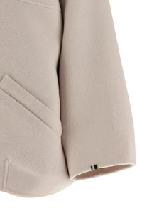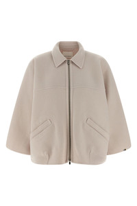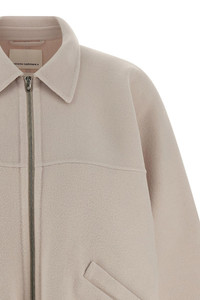 cod. N429BOGCHALK 'N°429 Bog' double-sided wool and cashmere short jacket with shirt collar, front zip closure, pockets, wide long sleeves, and bloused hem. Color: Beige Size & Fit: oversize fit - one size Composition: 70% wool 30% cachemire Made in: China