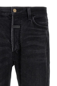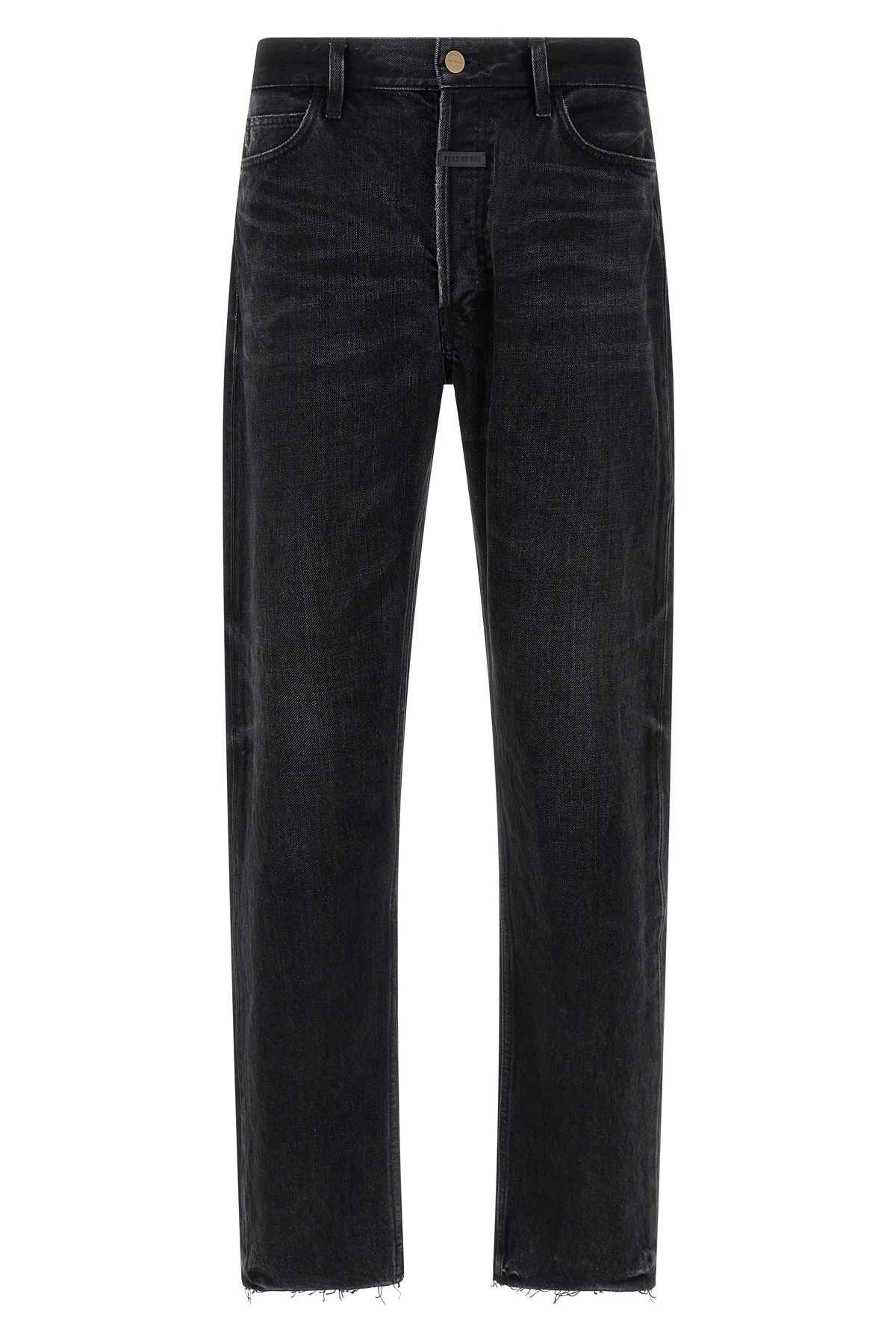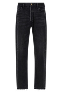 cod. FGE240408DNMBLACK 'Classic 5 Pocket' jeans in used-effect delave cotton denim, button closure with front logo patch, five pockets, straight leg with raw cut hem. Color: Black Size & Fit: true to size fit Composition: 100% cotton Made in: Japan