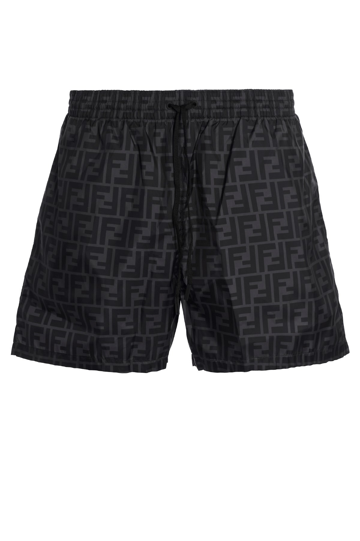cod. FXB077A79FF0P9B All-over ‘FF’ logo beach shorts in nylon with drawstring elastic waistband, pockets and inner briefs. Color: Black Size & Fit: True to size fit Composition: 100% polyester Made in: Italy