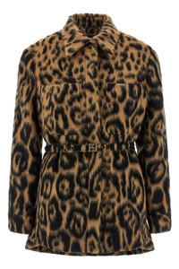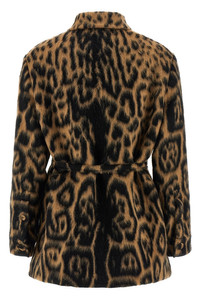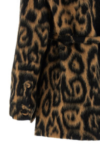 cod. FJ7561AVJFF1T6O Animal print swept wool jacket with shirt collar, 4 front pockets, button closure, side split and asymmetric length, adjustable waist belt with metal logo 'FF' buckle, long sleeves with cuffs and button. Color: Beige Size & Fit: True to size fit Composition: 62% virgin wool 38% wool Made in: Italy
