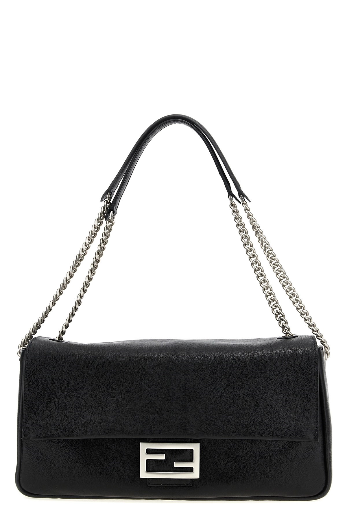 cod. 8BR828AS7AF1QD0 'Baguette Chain Large' leather shoulder bag, flap closure with metal logo, fixed short handle, chain shoulder strap. Color: Black Size & Fit: W 38 x H 21 x D 7 cm Composition: 100% bos taurus Made in: Italy