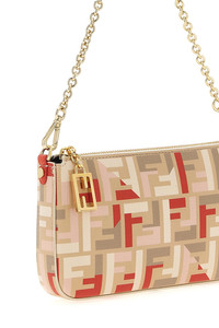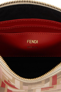 cod. 8BS073AV1YF1SY7 Baguette' fabric pouch with iconic FF pattern, top zip closure, removable chain handle, adjustable and removable leather shoulder strap. Color: Multicolor Size & Fit: W 20 x H 13 x D 3 cm Composition: 54% polyurethane 22% polyamide 12% cotton 12% polyester Made in: Italy