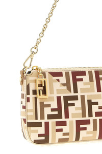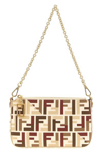 cod. 8BS073AV1YF1TVK Baguette' fabric pouch with iconic FF pattern, top zip closure, removable chain handle, adjustable and removable leather shoulder strap. Color: Multicolor Size & Fit: W 20 x H 13 x D 3 cm Composition: 54% polyurethane 22% polyamide 12% cotton 12% polyester Made in: Italy