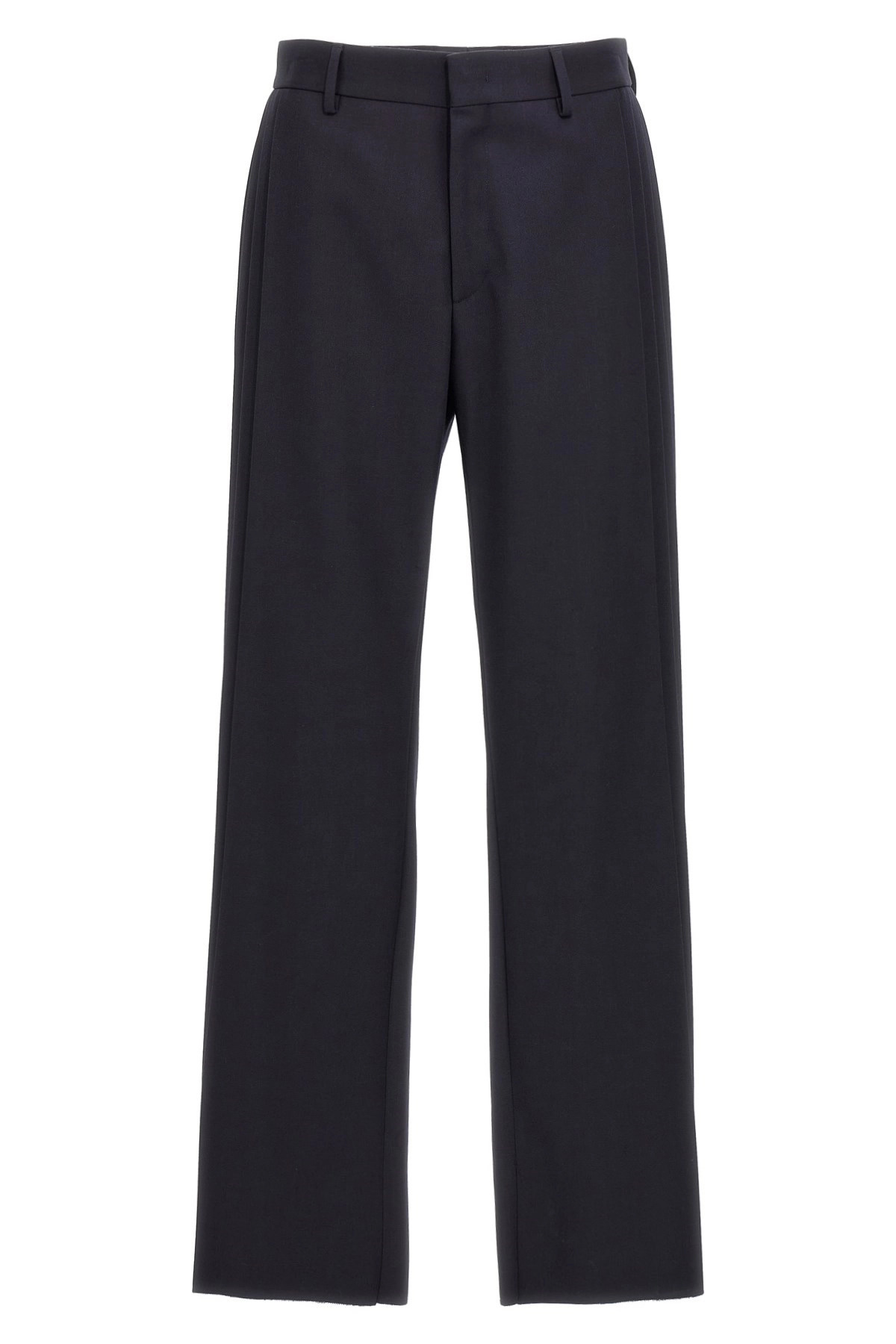 cod. FB0595ASCBF1AJR Wool crepe blend pants, pleats on the sides, hook and button zip closure, pockets. Color: Blue Size & Fit: true to size fit Composition: 55% polyester, 45% virgin wool Made in: Italy