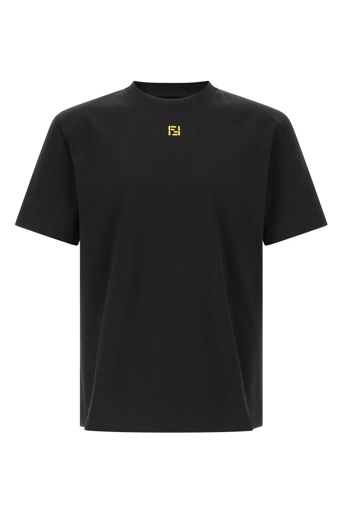cod. FY0936AY0HF0QA1 Thick cotton jersey T-shirt, crew neck, contrast front 'FF' logo embroidery, short sleeves. Color: Black Size & Fit: True to size fit Composition: 100% cotton Made in: Italy