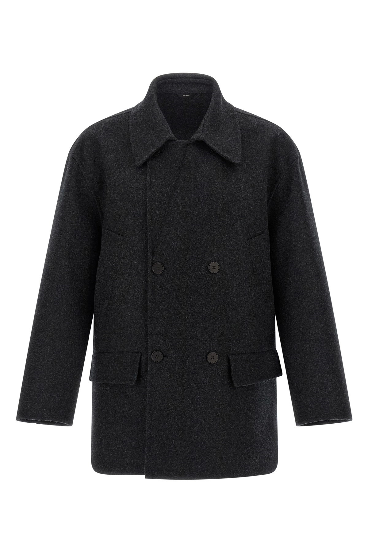 cod. FW1415AOYAF0TY6 Double melange wool felt coat, double-breasted caban style with front button closure, shirt collar, pockets, long sleeves with dropped shoulders, unlined. Color: Gray Size & Fit: oversized fit Composition: 100% virgin wool Made in: Italy