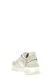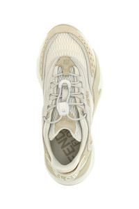 cod. 8E8620ASAXF1RUJ Tech mesh and suede 'Fendi Flow' sneakers with rubber details, embossed FF logo on the tongue and rubber tab with embossed logo on the heel at the back, adjustable elastic laces and drawstring closure, rubber sole. Color: White Size & Fit: EU WOMEN Composition: 73% polyester, 27% polyurethane Made in: Italy