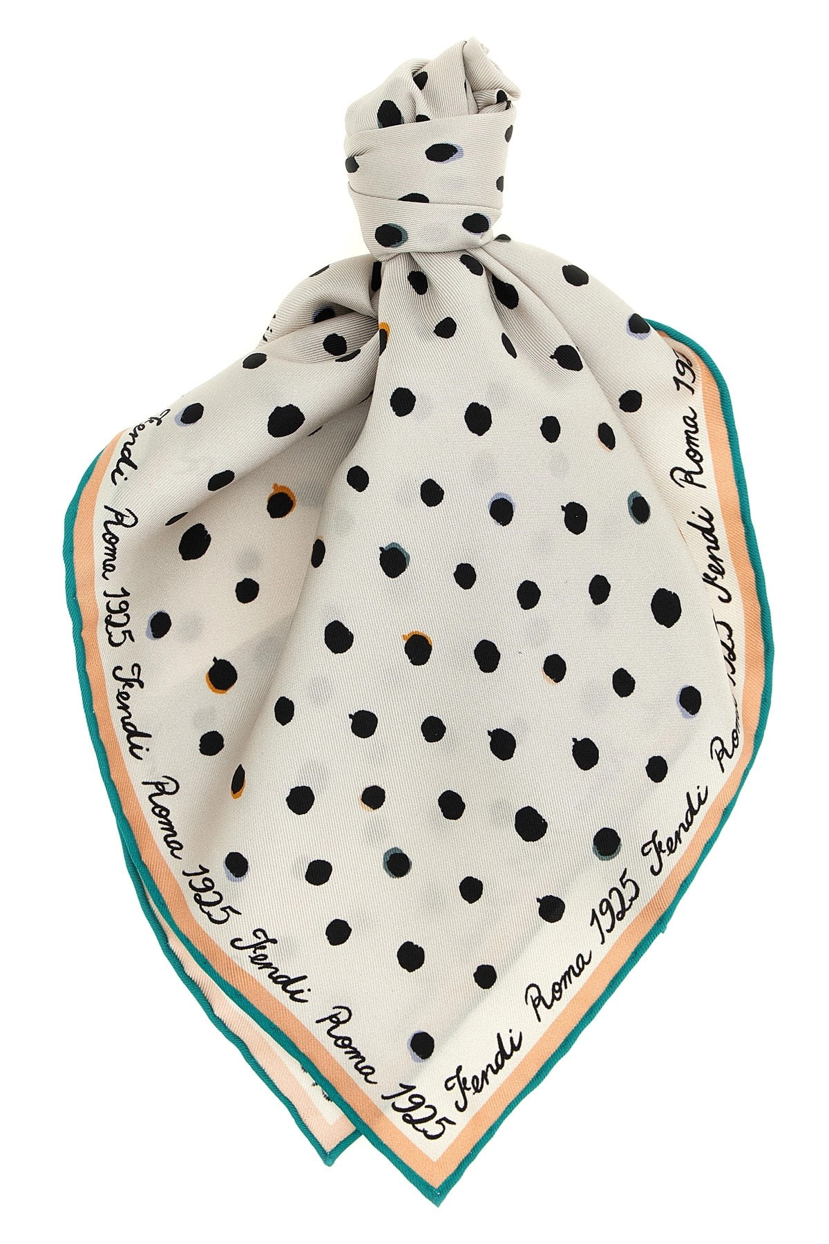 cod. FXT155AWEYF17JU 'Fendi' square scarf in 'Falena Dots' patterned silk. Color: White/Black Size & Fit: 55 x 55 cm Composition: 100% silk Made in: Italy
