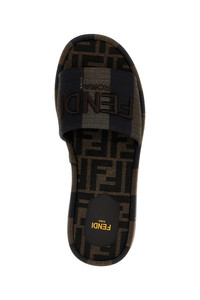 cod. 8R8515AORHF1P95 'Fendi Sunshine' fabric sandals with Pegin stripes, front logo embroidery, platform hem. Color: Brown Size & Fit: EU WOMEN Composition: 100% cotton