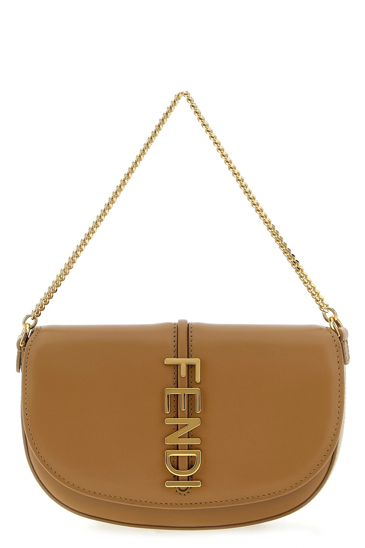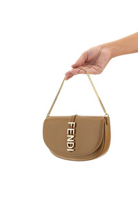 cod. 8M0529ANSSF19P8 Leather 'Fendigraphy' wallet on chain, flap closure with snap button and front metal lettering logo, short removable thin chain shoulder strap, long leather shoulder strap and removable chain. Color: Beige Size & Fit: W 20.5 x H 13 x D 3.5 cm Composition: 100% calfskin leather (Bos Taurus) Made in: Italy