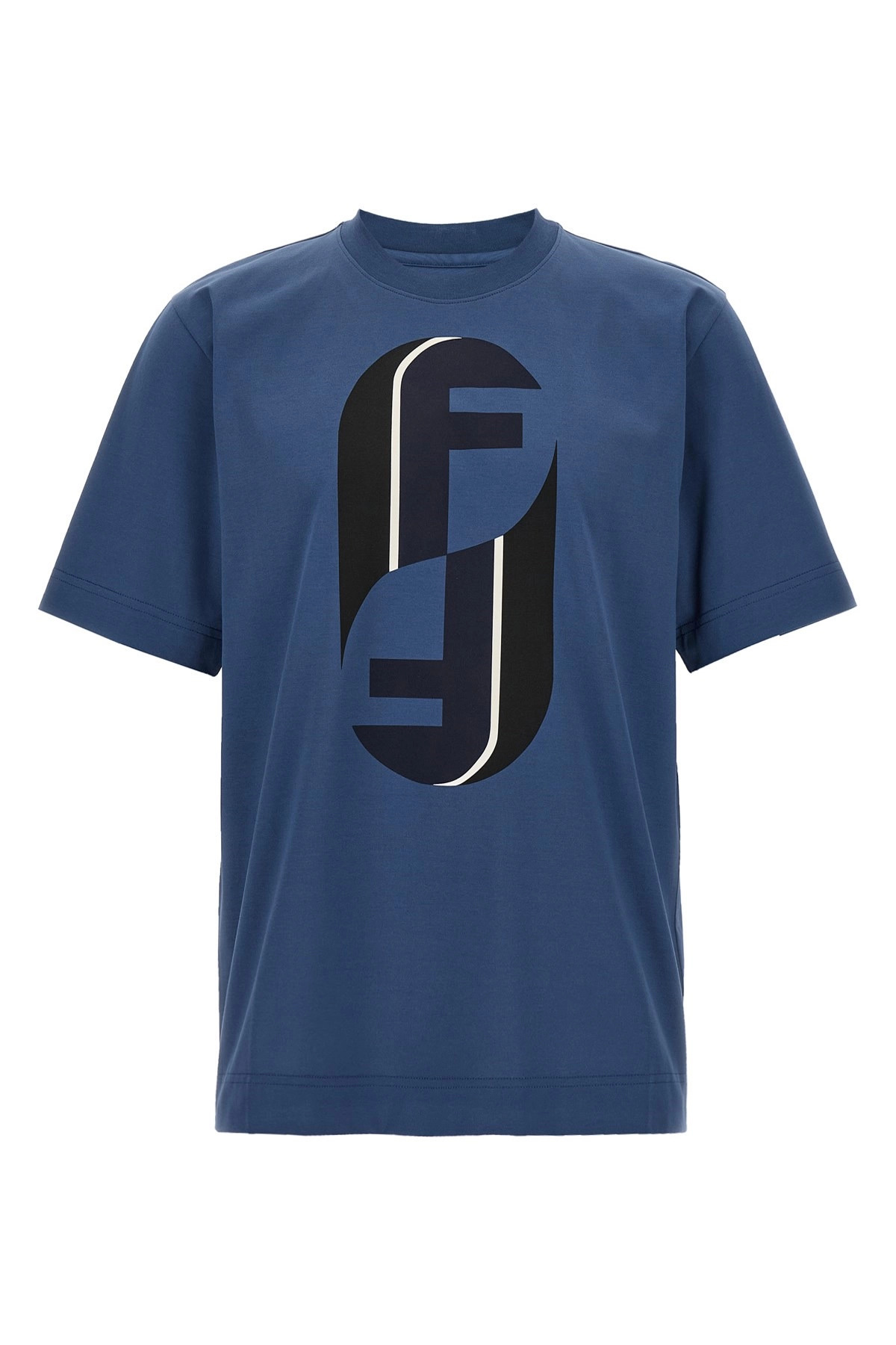 cod. FY0936AOZ4F0QR0 Cotton T-shirt with maxi monogram 'Fendinity' print on the front, crew neck, short sleeves. Color: Blue Size & Fit: true to size fit Composition: 100% cotton Made in: Italy