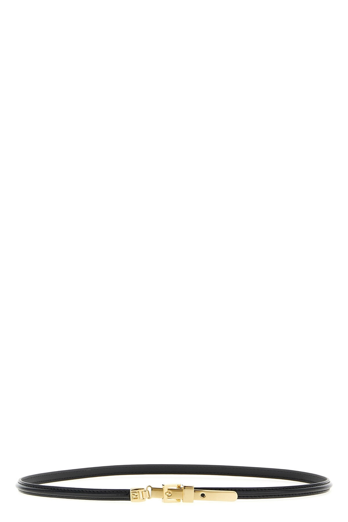 cod. 8C0749ANSSF0KUR Thin shiny leather belt, metal loop with adjustable closure and engraved FF logo. Color: Black Size & Fit: H 1 cm Composition: 100% calfskin leather (Bos Taurus) Made in: Italy
