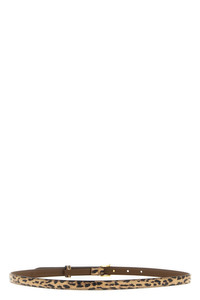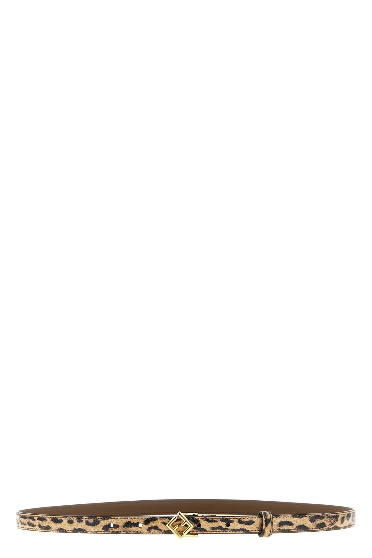 cod. 8C0742AV54F1N1S 'FF Diamonds' animal print karung snake leather belt, diagonal metallic FF cufflink closure. Color: Multicolor Size & Fit: H 1.5 cm Composition: 100% karung Made in: Italy
