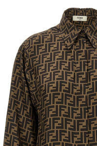 cod. FS8107A8G3F118W Silk twill shirt with all-over FF monogram print, button closure, long cuffed sleeves. Color: Brown Size & Fit: Comfort fit Composition: 100% silk Made in: Italy