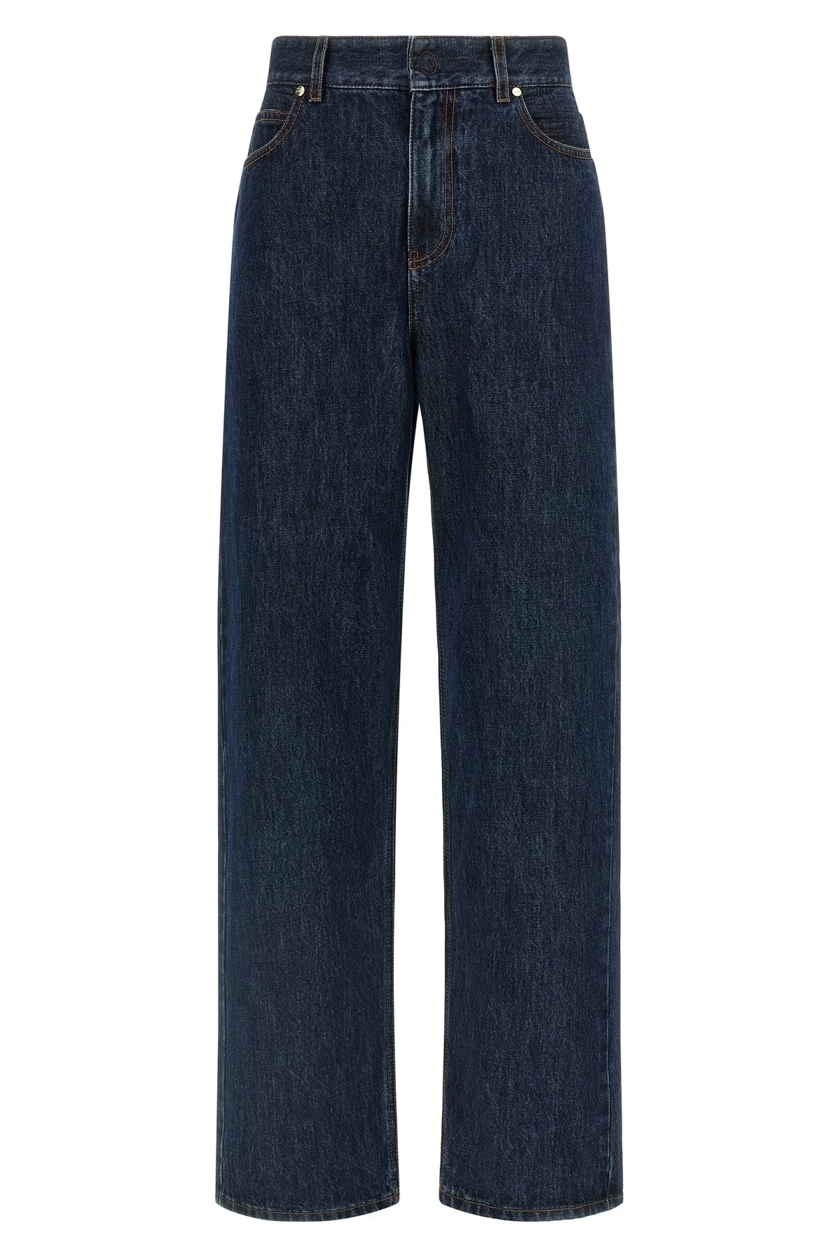 cod. FLP882AW82F1UKI Cotton denim jeans with stitched FF details, 5-pocket style, straight leg, zip and snap closure, leather back logo tag. Color: Blue Size & Fit: True to size fut Composition: 100% cotton Made in: Italy