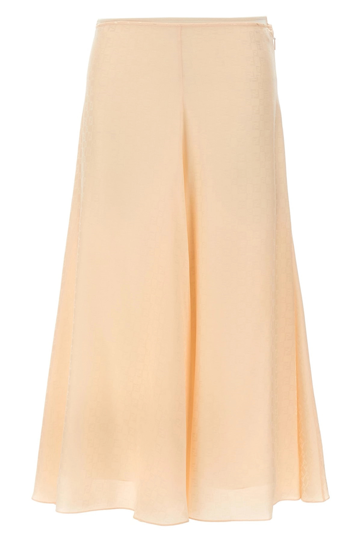 cod. FQ7655AUQGF1RX0 Midi skirt in jacquard silk with checkerboard effect FF pattern, flared line, side zip closure. Color: Pink Size & Fit: true to size fit Composition: 100% silk Made in: Italy