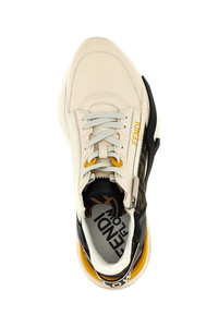 cod. 7E1392AJZHF1HGR 'Flow' leather sneakers with elastic laces, a zip on the side, a notched F-sole, Fendi Flow lettering logo print embossed on the heels, FF jacquard fabric details, Lycra® tongue with FF pattern, white light rubber sole with black diagonal detailing. Color: Multicolor Size & Fit: UK MAN Composition: 100% leather