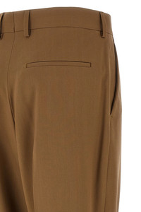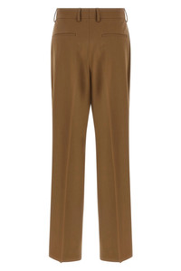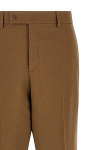 cod. FB1089AU60F0QE1 Cigarette-style pants in wool gabardine with micro FF logo detail in palladium metal applied at the waist with button effect, stretched pleat, zipper hook and front button closure, pockets, straight leg. Color: Brown Size & Fit: true to size fit Composition: 100% virgin wool Made in: Italy