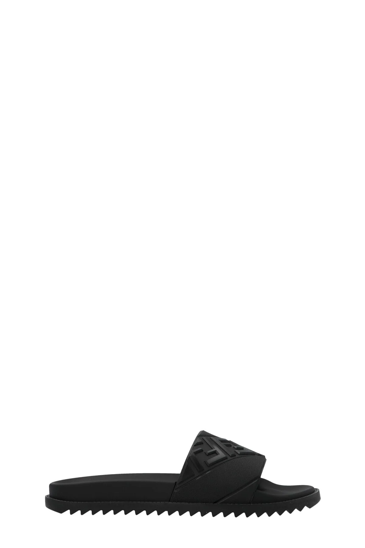 cod. 7X1377ABO2F0QA1 'Diagonal FF’ black rubber slides with logo detail on band. Color: Black Fabric: 100% polyurethane Made in: Italy Size & Fit: UK MEN