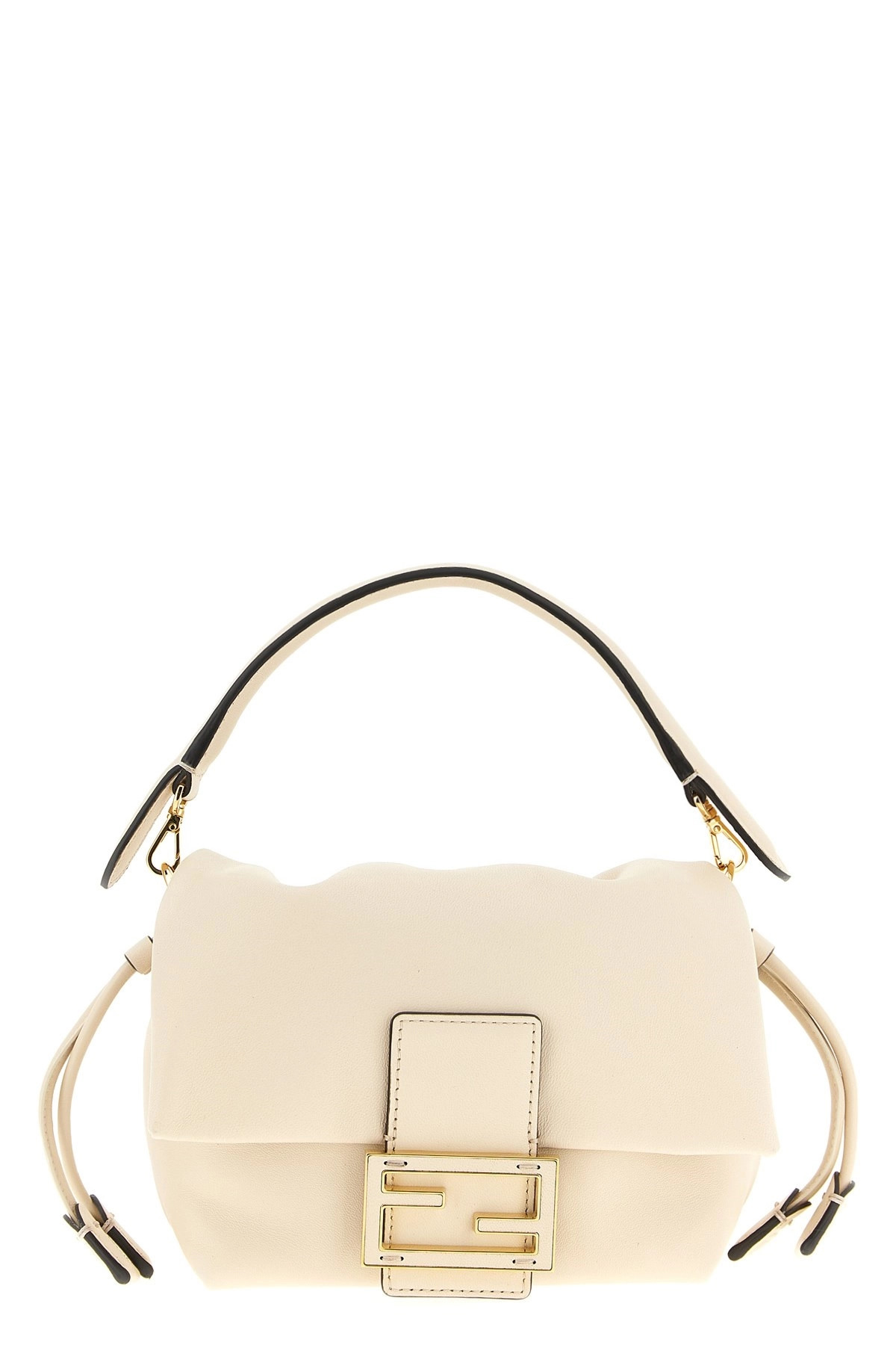 cod. 8BS105ABVEF0VWM Small nappa 'Mamma Baguette' handbag with adjustable inner drawstring, magnetic flap closure with tone-on-tone metal and leather logo buckle, removable short handle, and removable shoulder strap. Color: White Size & Fit: W 16 x H 13 x D 10 cm Composition: 100% lamb leather (Ovis aries) Made in: Italy