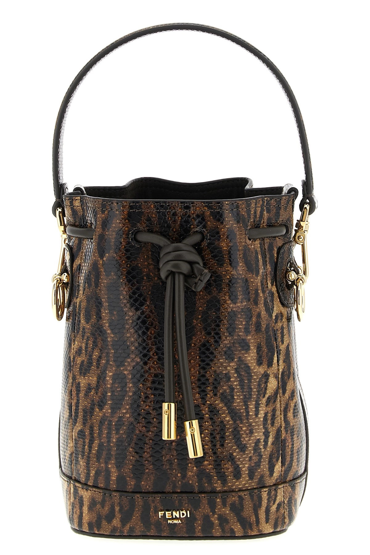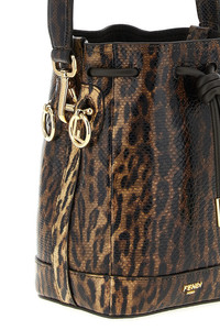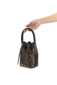 drawstring-closure leopard-print bucket bag