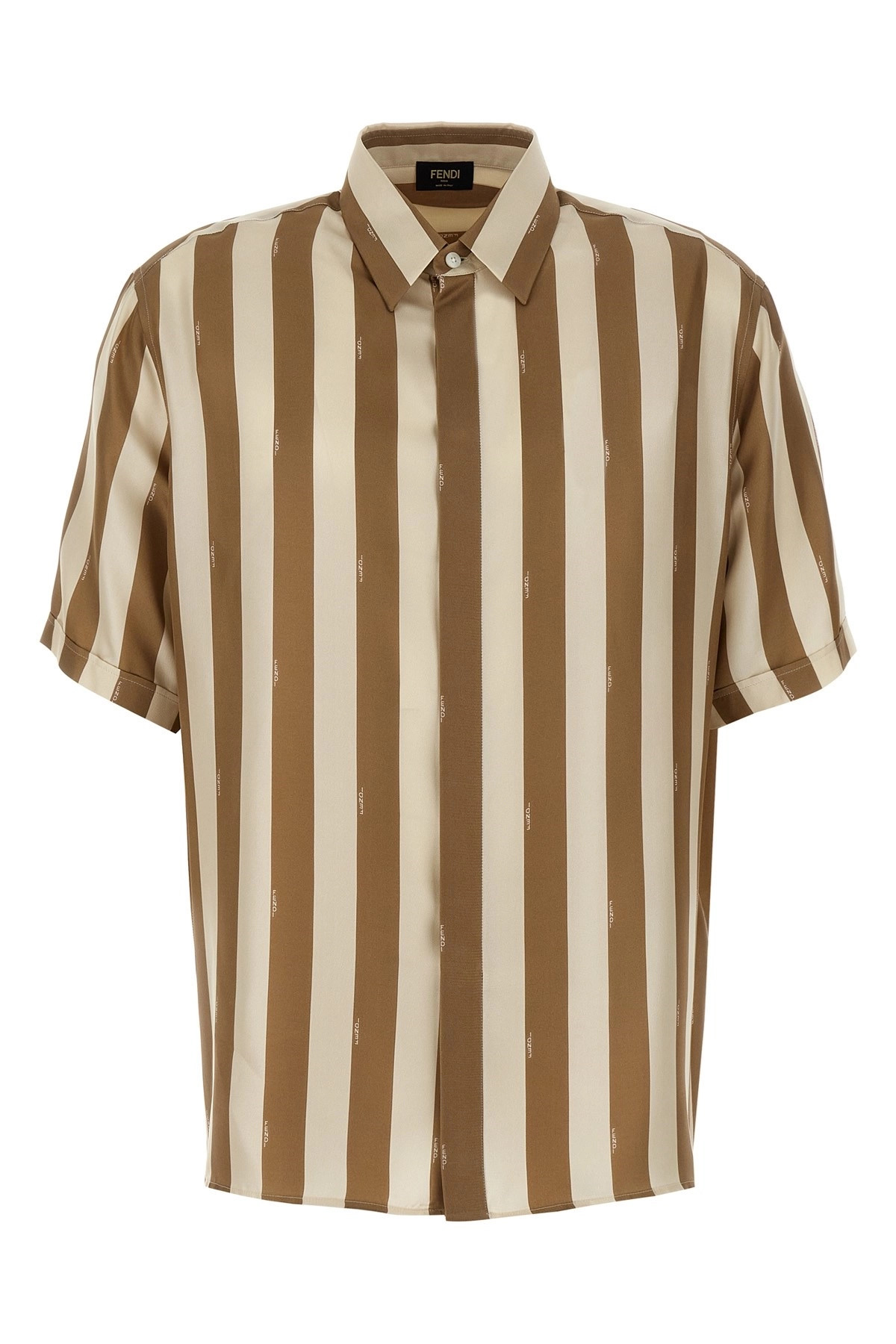 cod. FS0795AU6ZF1QYZ Silk shirt with iconic Pequin stripes, front button closure, and short turned-up sleeves. Color: Brown Size & Fit: true to size fit COLLAR size Composition: 100% silk Made in: Italy