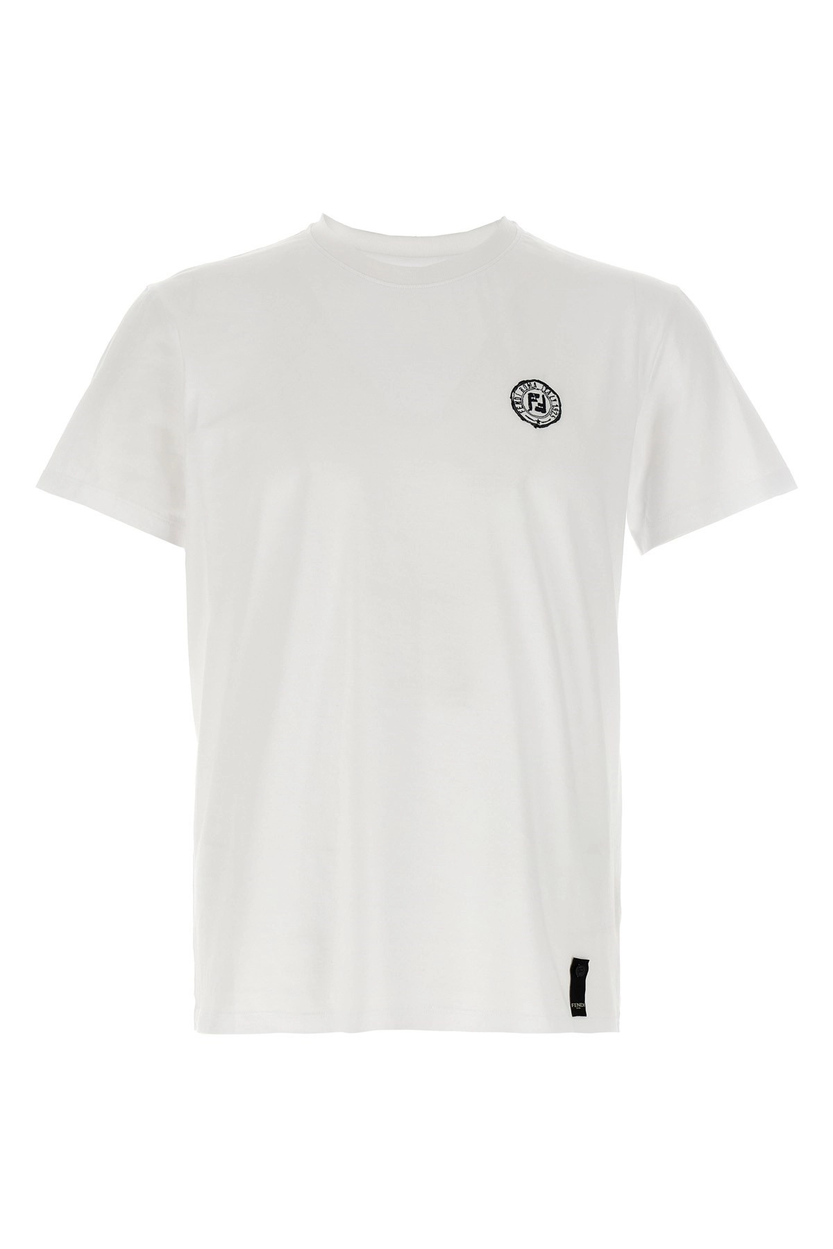 cod. FY1319AV0HF0QA0 Cotton T-shirt, 'Postcards' patch on the front and back, crew neck, short sleeves. Color: White Size & Fit: Slim fit Composition: 100% cotton Made in: Italy