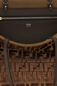 cod. 8BH425AT14F0L1B Roll Large' reversible shopping bag in all-over embossed FF jacquard velvet and solid canvas, double fixed leather handle, removable inner leather pocket. Color: Brown Size & Fit: W 35 x H 32 x D 19.5 cm Composition: 39% polyester 35% cotton 25% viscose 1% af Made in: Italy