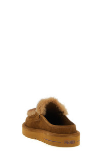 cod. 8R8777AYA0F1TP4 Suede sabots, mink fur top with gold metal front FF 'Baguette' logo buckle, rubber sole with insert and logo lettering on the heel. Color: Multicolor Size & Fit: EU WOMEN Composition: 100% calfskin leather (Bos Taurus) Made in: Italy
