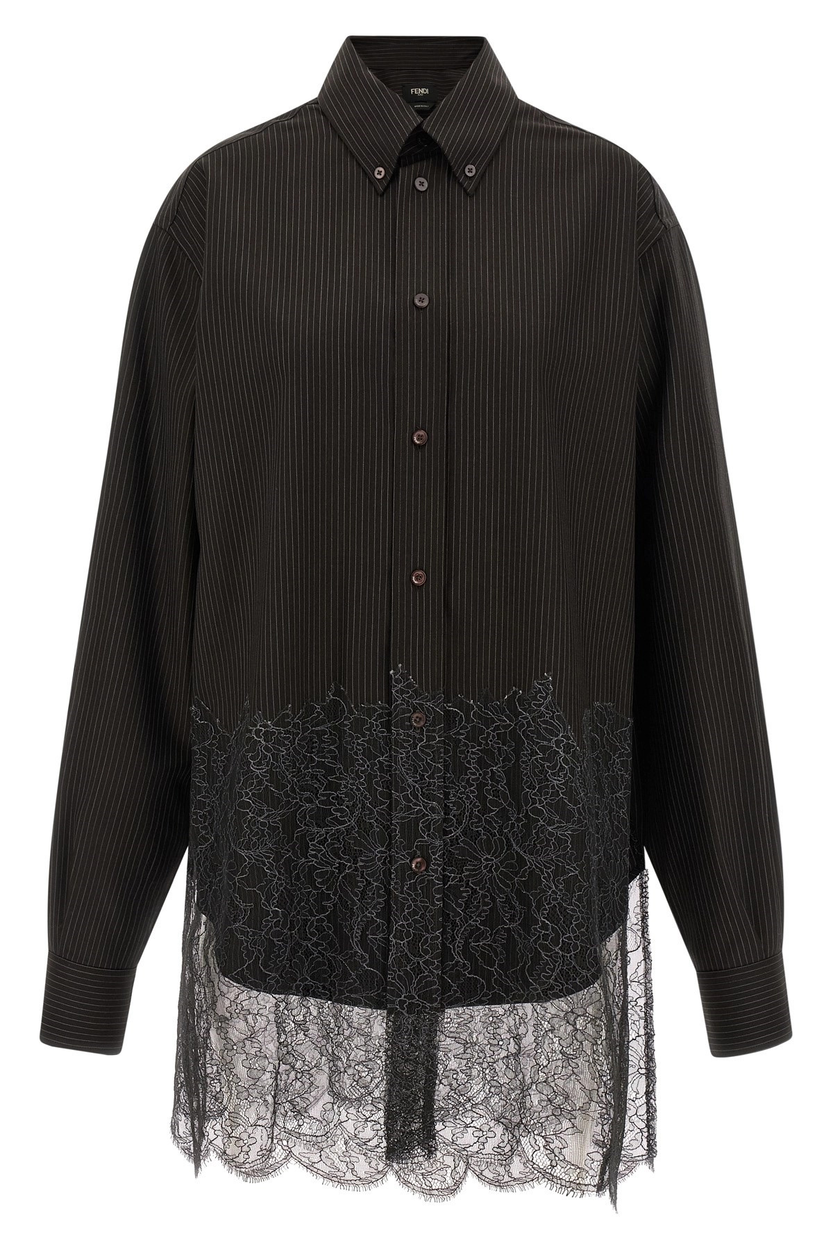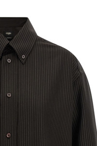 cod. FS1332AVK1F0DHP Pinstripe patterned wool shirt, button-down model, front button closure, long sleeves with cuffs and dropped shoulder, garment bottom with double layer lace insert, side slits. Color: Brown Size & Fit: oversized fit Composition: 100% virgin wool Made in: Italy