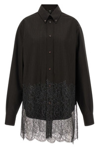 Shirt Black pinstriped wool and lace shirt