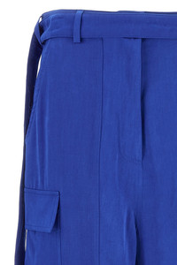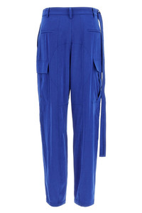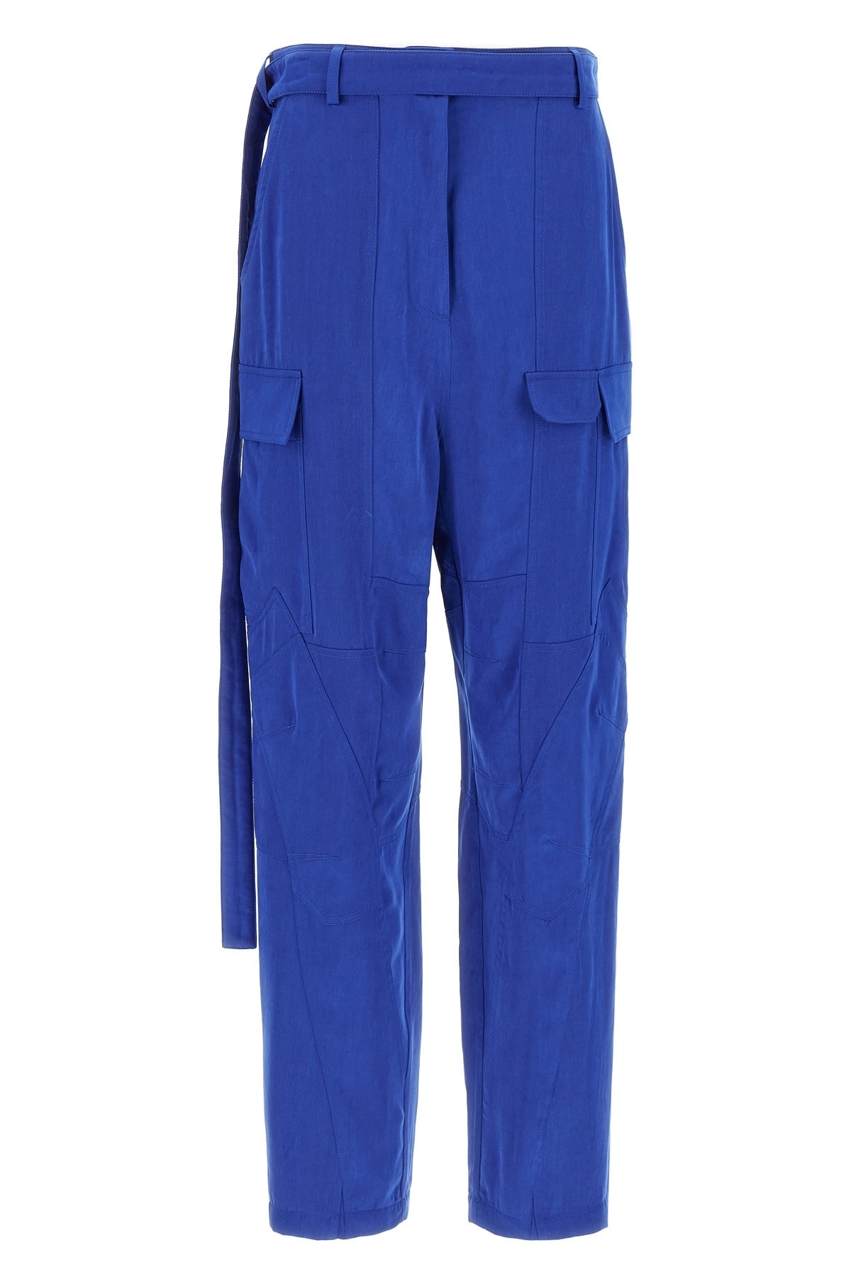 cod. 782700KLEINBLUE Lyocell trousers, cargo style with pockets, zip and front button closure, cuts and shapes on the leg, pockets, removable sash. Color: Blue Size & Fit: true to size fit Composition: 100% lyocell Made in: Italy