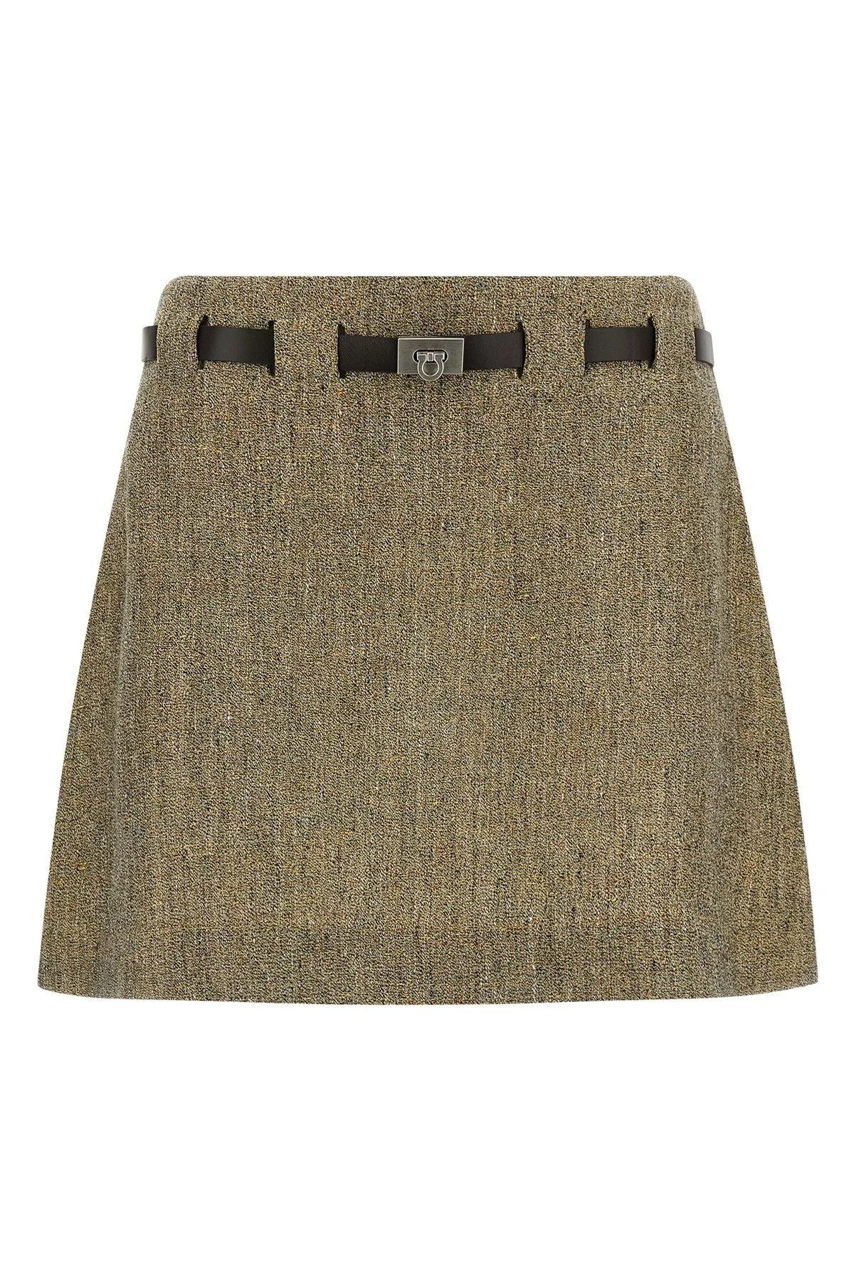 cod. 790509MULTICOLOR Mini skirt in spun linen with a grained texture, slightly flared silhouette, model with back pleats, side zip closure, buttonholes with leather belt with metal 'Gancini' buckle inserted. Color: Multicolor Size & Fit: true to size fit Composition: 100% linen Made in: Italy