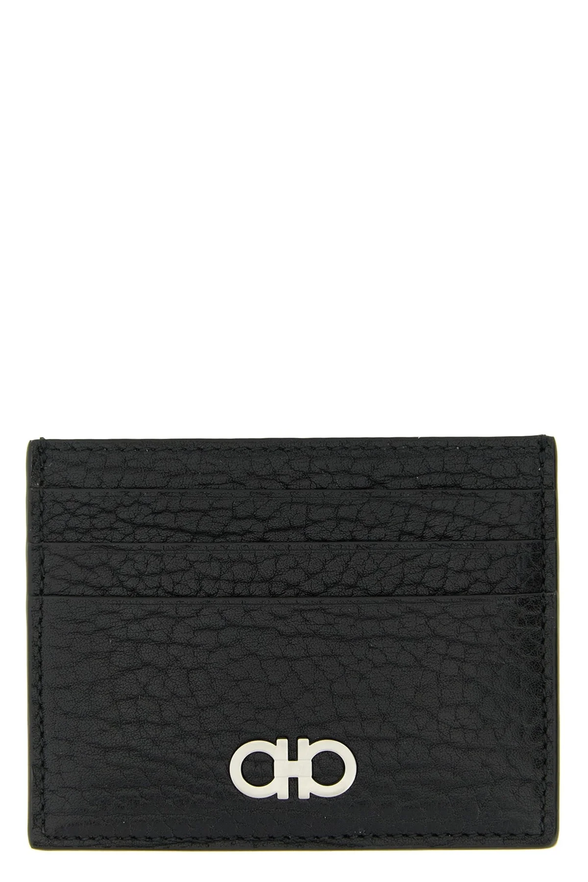 cod. 788738NERO 'Gancini' card holder in treated calf leather with double finish. Color: Black Size & Fit: 11 x 9 cm Composition: 100% calfskin leather (Bos Taurus) Made in: Italy