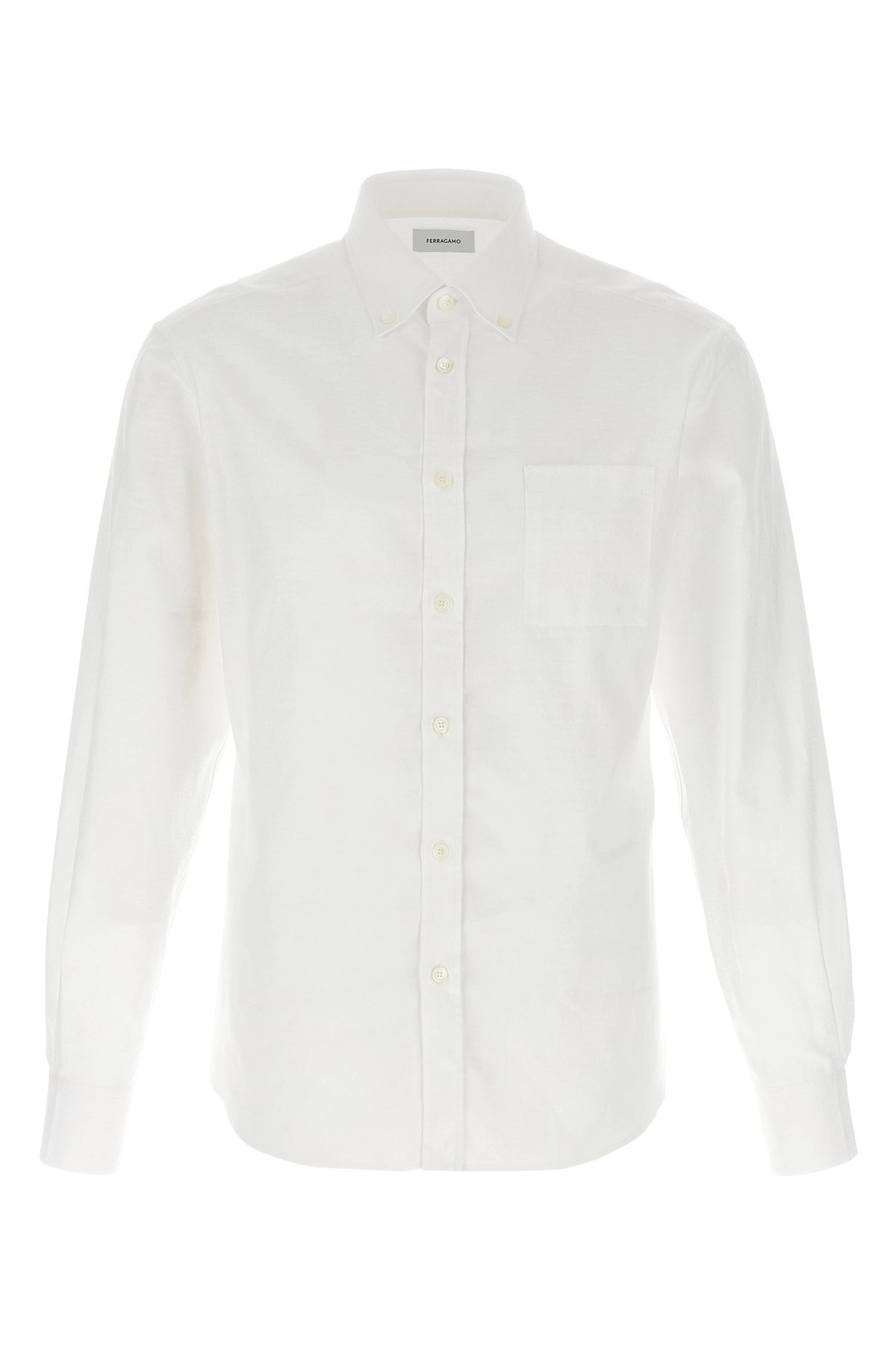 cod. 786620WHITE Cotton shirt with all-over jacquard 'Gancini' and button-down design, breast pocket, front button closure, long cuffed sleeves. Color: White Size & Fit: true to size fit Composition: 100% cotton Made in: Italy