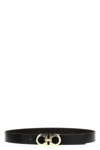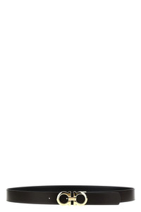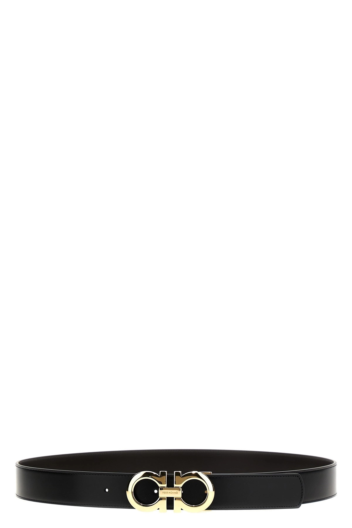 cod. 586940NERO Black and brown leather reversible belt, metal 'Gancini' buckle. Color: Multicolor Size & Fit: H 3.5 cm Composition: 100% calf leather (Bos Taurus)