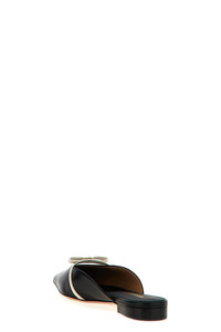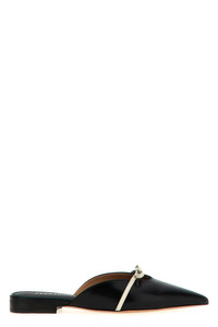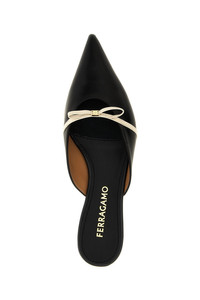 cod. 781078NERO 'Giulye' leather mules with strap detail, pointed model. Color: Black Size & Fit: FERRAGAMO SIZE Composition: 95% goat leather 5% calf leather Made in: Italy