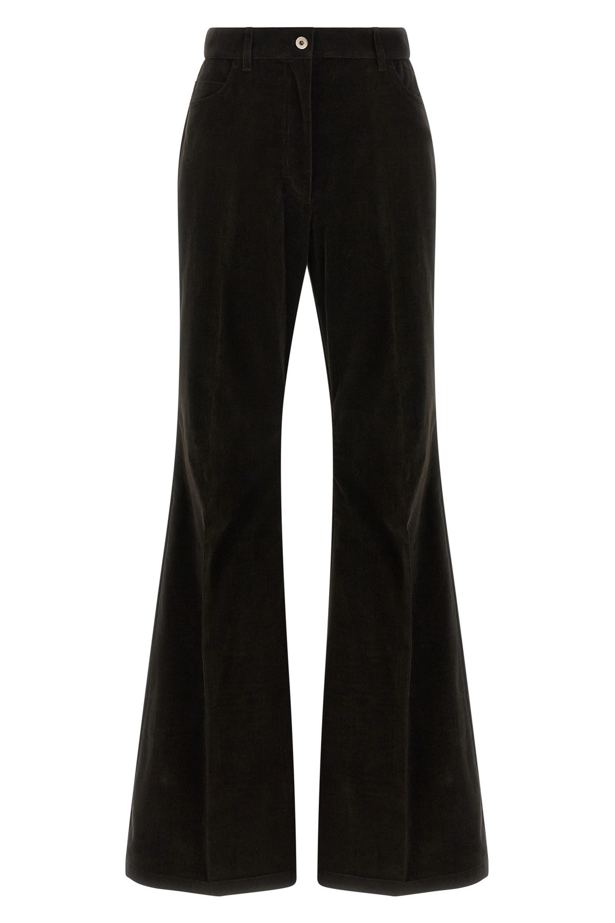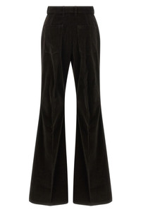 cod. 785197DARKESPRESSO Striped velvet trousers, flared leg, stretched pleat, high waist, zip and front button closure, five pockets. Color: Brown Size & Fit: true to size fit Composition: 98% cotton, 2% elastane Made in: Italy