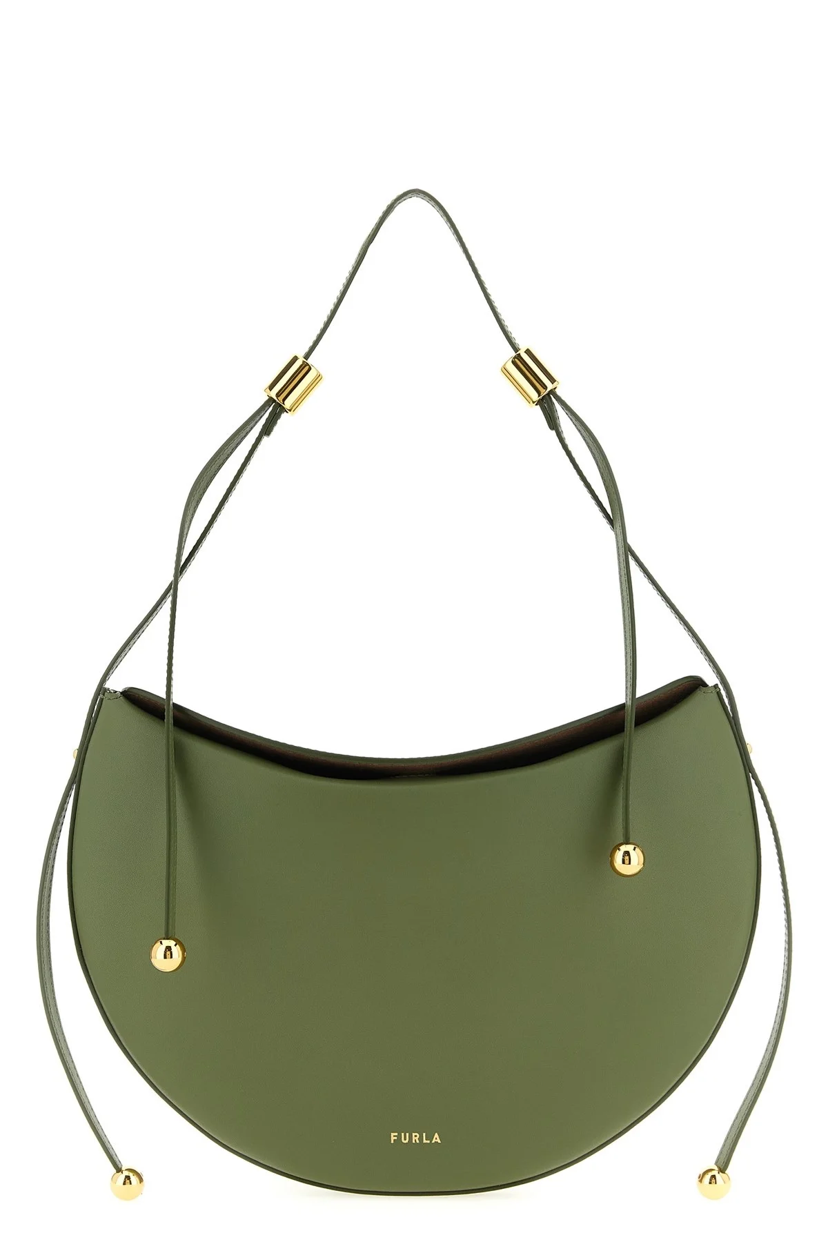 cod. WB01868BX31044555S Small 'Furla Moonstone' shoulder bag in calf leather, front embossed logo, top magnetic folded closure, adjustable shoulder strap with cylindrical hardware and the two ball elements. Color: Green Size & Fit: W 30 x H 20 x D 2 cm Composition: 100% calfskin leather (Bos Taurus) Made in: China
