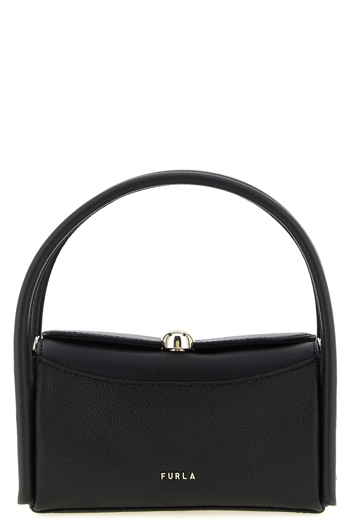cod. WE00893BX4296O6000 Boston Nicole' mini handbag in grain-effect print leather with double fixed handle, magnetic flap closure, front metal lettering logo, and adjustable and removable shoulder strap. Color: Black Size & Fit: W 18.5 x H 10 x D 6 cm Composition: 100% calfskin leather (Bos Taurus) Made in: China