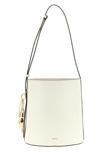 cod. WB01875ARE000PNN00 Small 'Roxie' bucket bag in leather with grain effect print, front metal lettering logo, internal magnetic closure, flexible bottom, adjustable shoulder strap, removable charm. Color: White Size & Fit: W 23.5 x H 25 x D 16.5 cm Composition: 100% calfskin leather (Bos Taurus) Made in: China