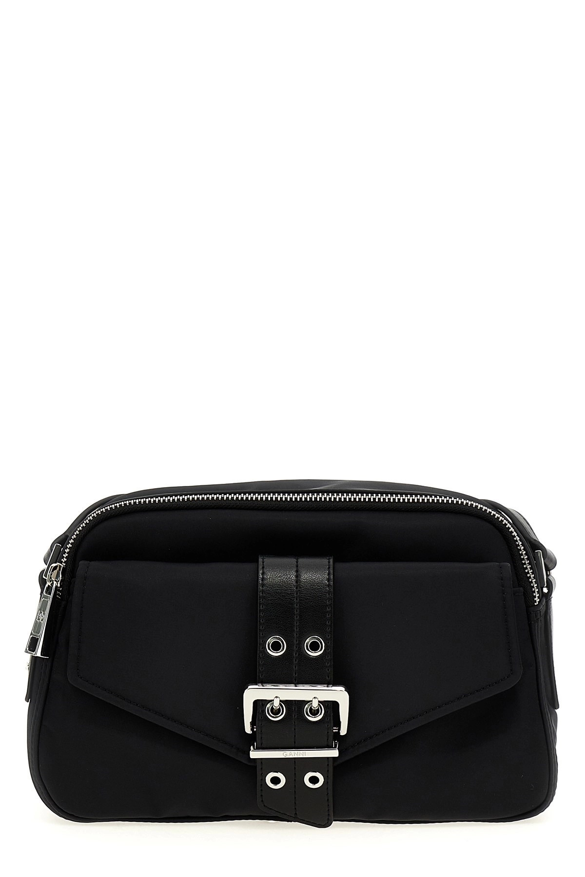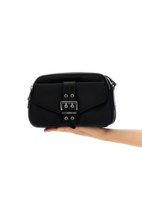 cod. A6370099 'Bucky' canvas crossbody bag with leather-effect details, metal details, zip closure, front flap pocket, adjustable shoulder strap. SUSTAINABLE: This product is made with recycled nylon. Color: Black Size & Fit: W 26.5 x H 16 x D 9 cm Composition: 100% nylon Made in: China