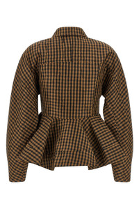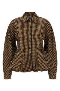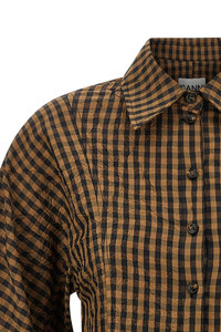 cod. A1040054925 'Taffeta' blouse with 'Crinckled' check print, collar, front button closure, flounce waist, long cuffed sleeves. SUSTAINABLE: Product made from recycled polyester. Color: Brown Size & Fit: True to size fit EU WOMEN Composition: 100% recycled polyester Made in: Turkey
