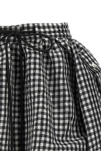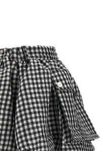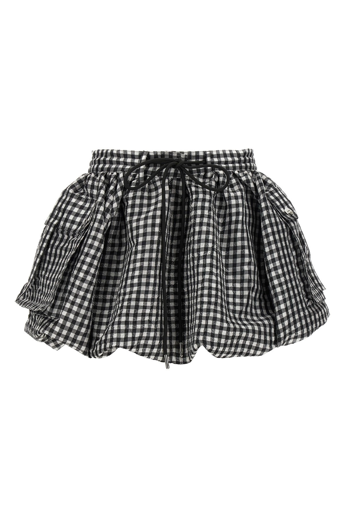 cod. W0465099 'Crinkled Check Mini Bubble' skirt in crinkled vichy fabric with cotton lining, balloon silhouette, back elastic with adjustable drawstring at the waist, front button closure, side cargo pockets. SUSTAINABLE: Product made from recycled polyester. Color: Black Size & Fit: true to size fit - EU size Composition: 100% polyester Made in: Turkey