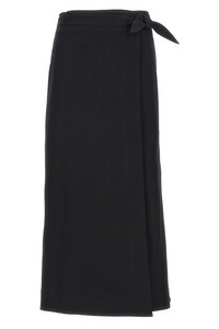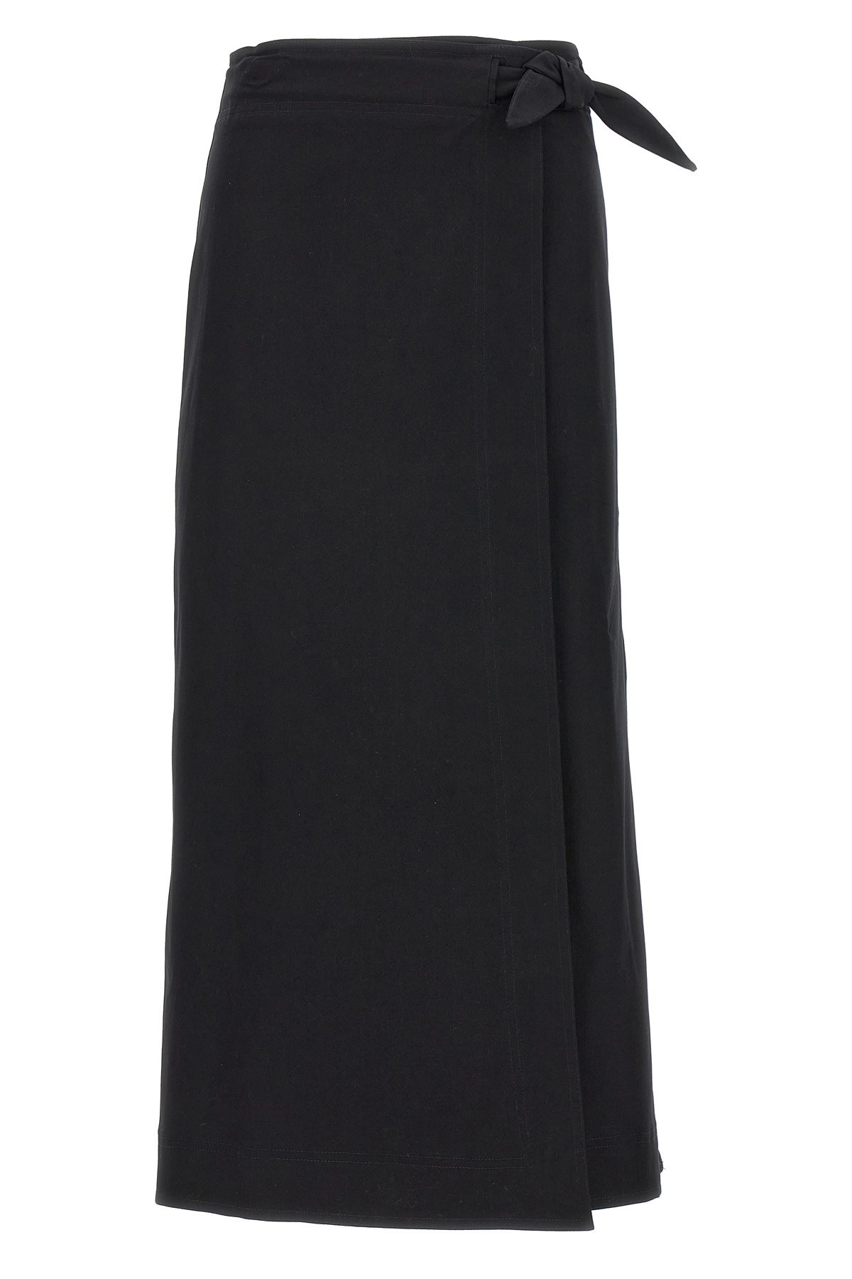 cod. F9613099 'Herringbone Canvas' cotton skirt with drawstring closure and knot at the waist, side slits. Color: Black Composition: 98% cotton, 2% elastane Size&Fit: true to size fit German size